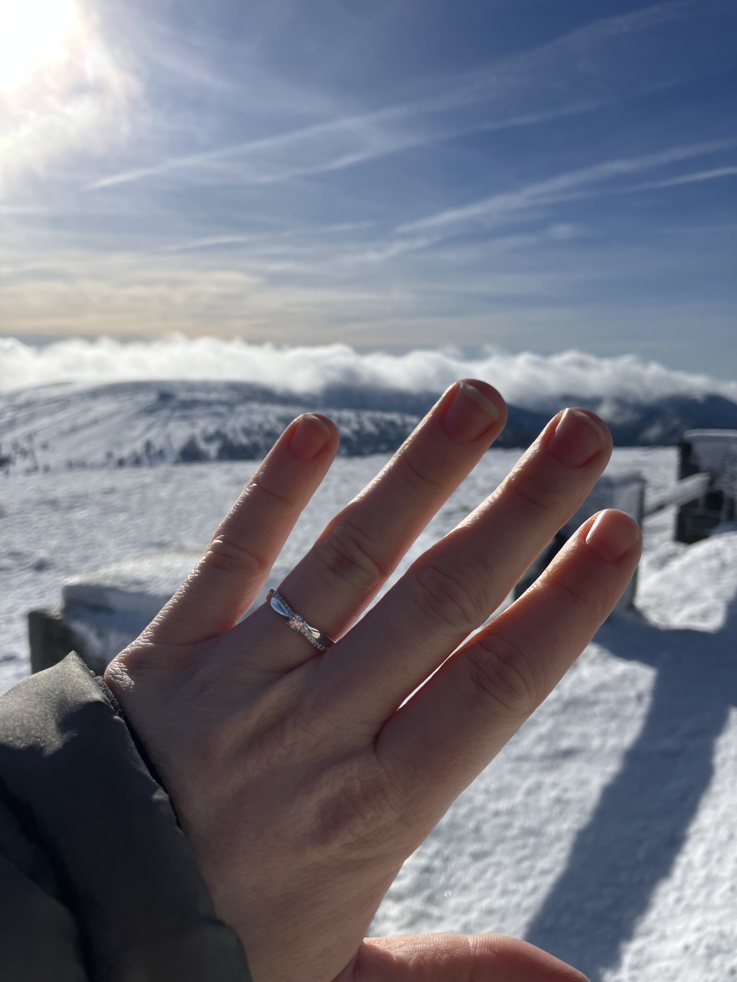 Na první pohled obyčejný zimní výlet na Praděd. Slunce svítilo, vítr se opíral do bund a sníh křupal pod nohama. Když dorazili až na vrchol, Víťa se na chvíli zastavil, podíval se na Marťu a poklekl.